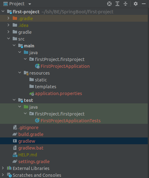 - 실제로 코드가 입력되는 src디렉토리를 보게 되면, main과 test로 나뉘게 되는데 이것이 요즘 기본형태이다.