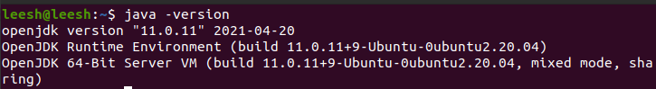 다음과 같이 나온다면 제대로 설치된 것이다. $ sudo apt update -y $ sudo apt install openjdk-11-jdk$ java -version- 우분투에서는 다음과 같이 패키지관리자인 apt를 이용하여 설치해주면 된다.