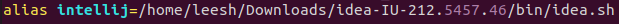 - 우분투로 설치를 하게 되면 해당 스크립트를 실행해야 IntelliJ가 실행되게 되는데, 매번 이렇게 하는것은 불편하기 때문에 다음과 같이 alias로 등록해서 간편하게 실행할수 있도록 한다.alias를 설정해주면 된다.